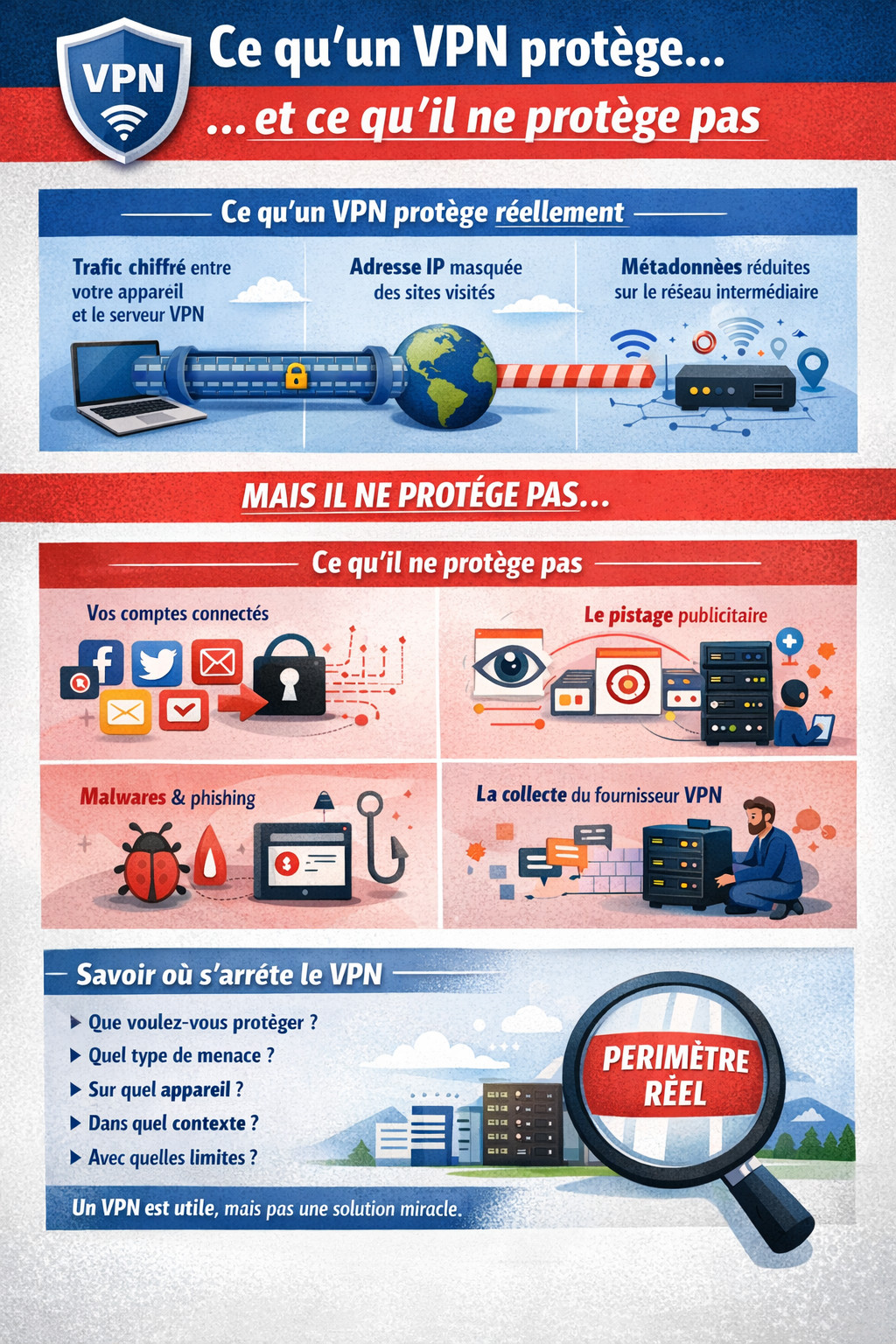 La bonne question n’est pas “est-ce qu’un VPN protège ?” mais plutôt :